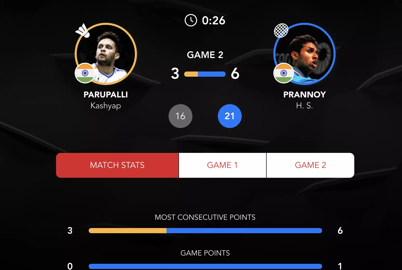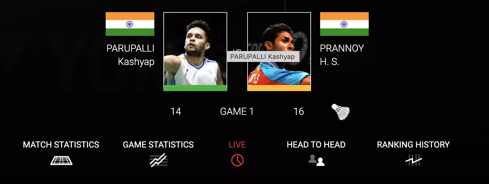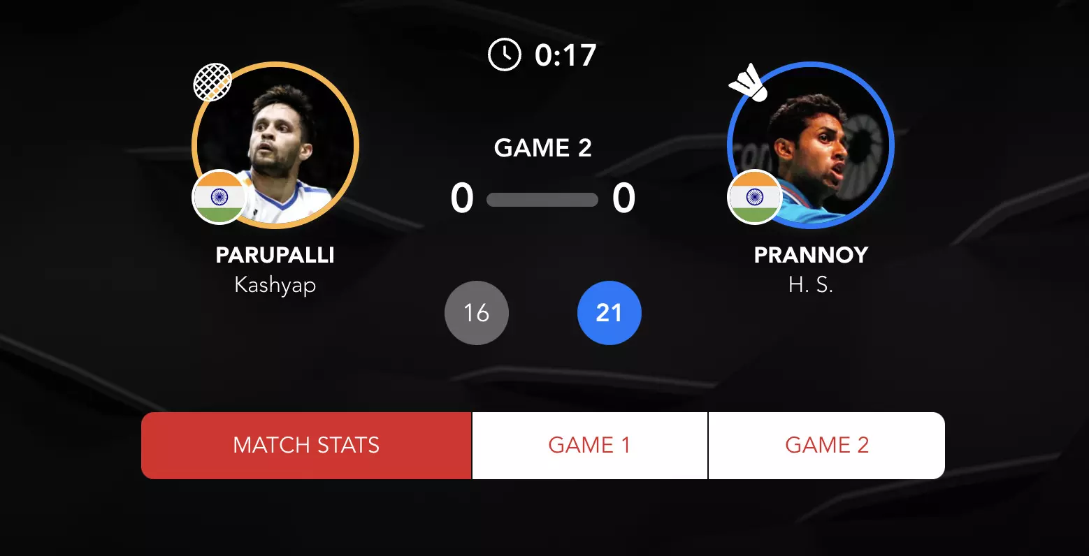 Nothing separates the Indian shuttlers and neither Kashyap nor Prannoy has taken a considerable lead till now.