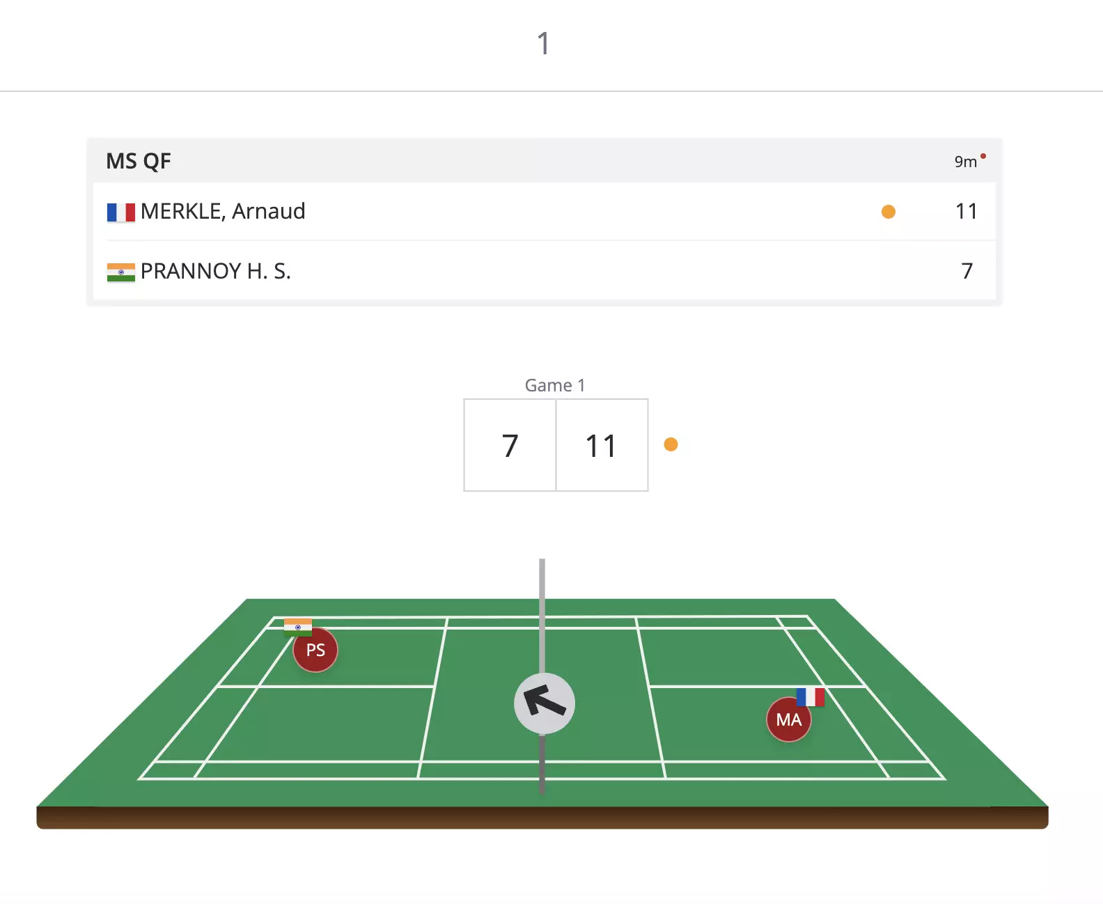 Things are moving rapidly in this Prannoy match with Merkle making quick attacks and maintaining the lead.