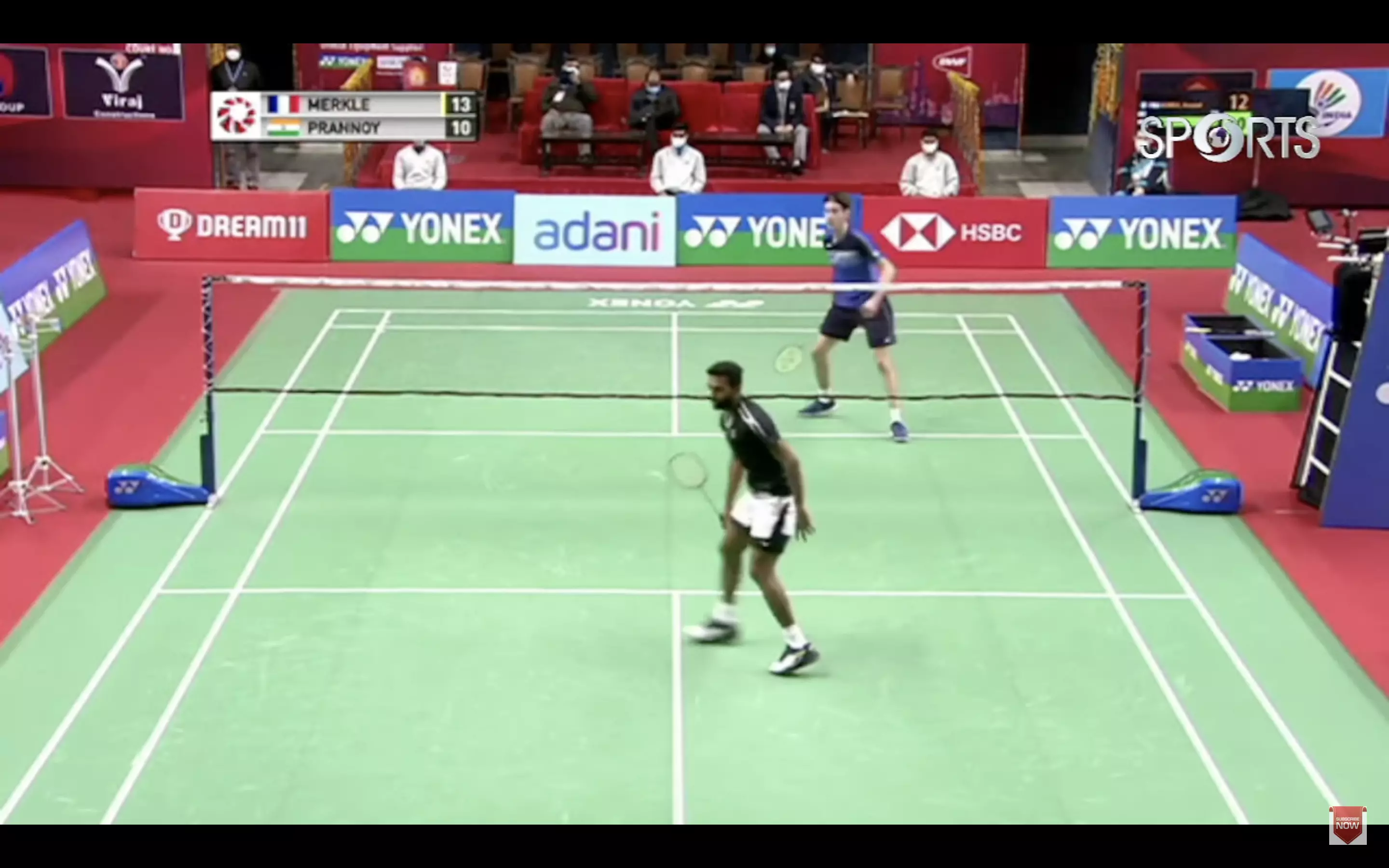 HS Prannoy is yet to get used to the conditions of the Babu Banarasi Das Indoor Stadium in Lucknow as Frenchman Arnaud Merkle comes attacking right away!