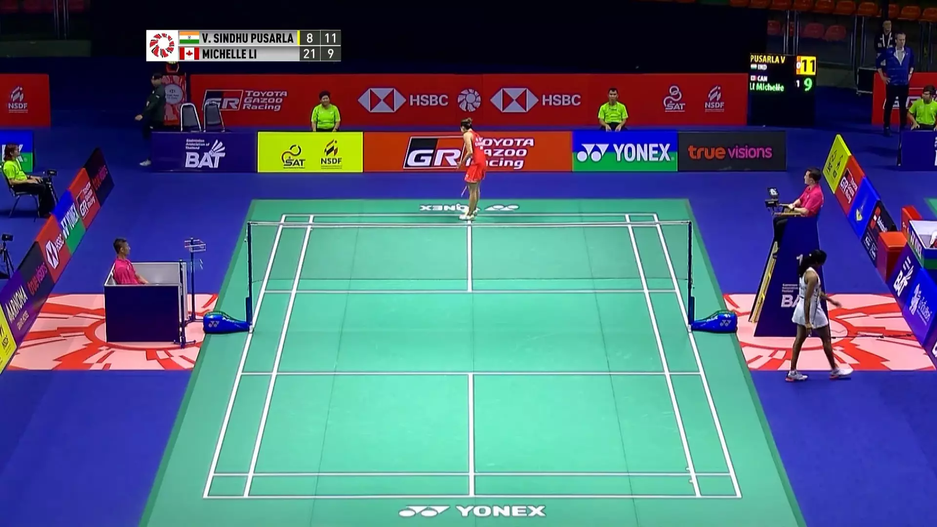 PV Sindhu gets her first point after Michelle Li took three consecutive points.