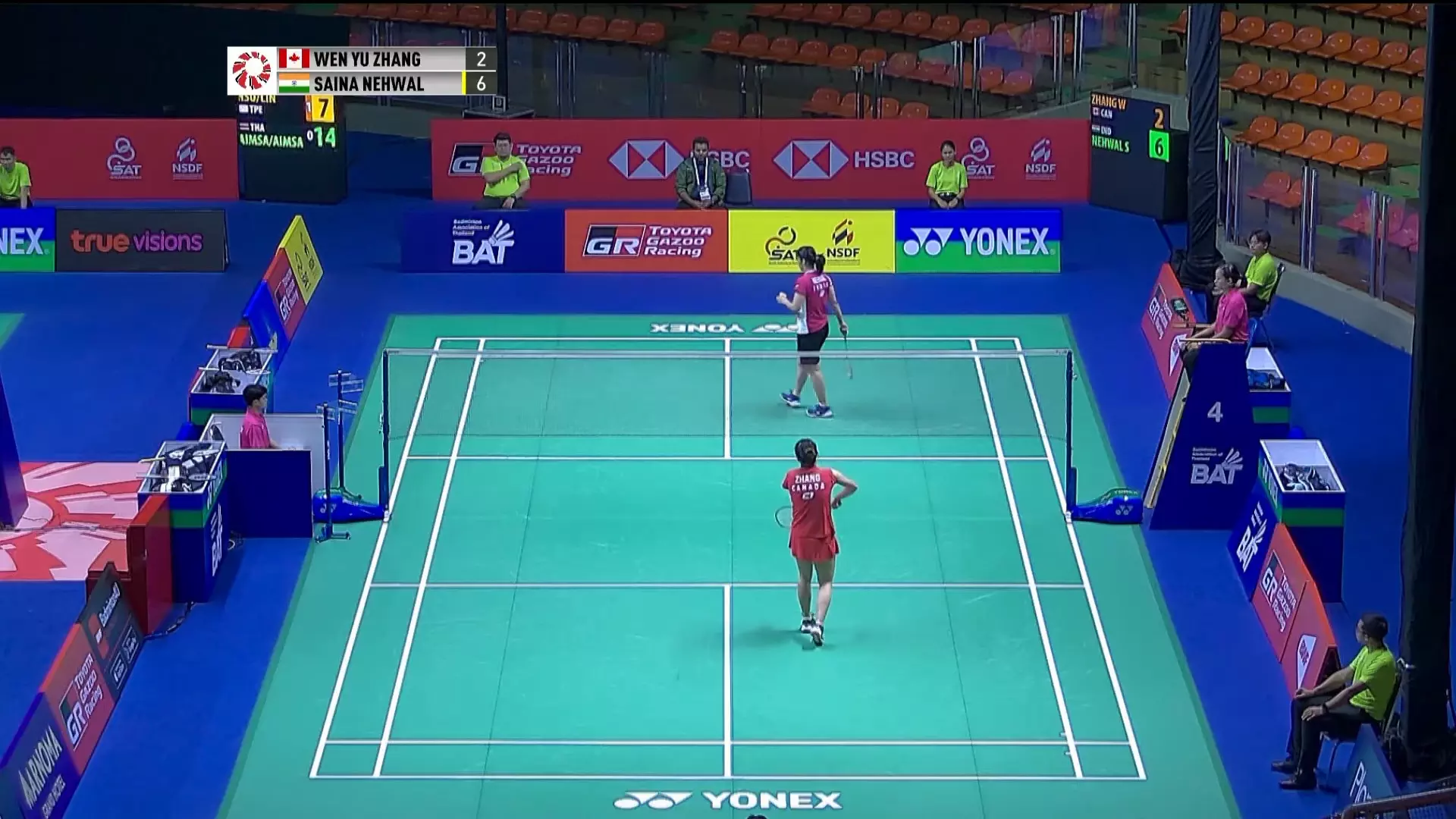 Back on court after months, Saina Nehwal as started well and she is leading 6-2.