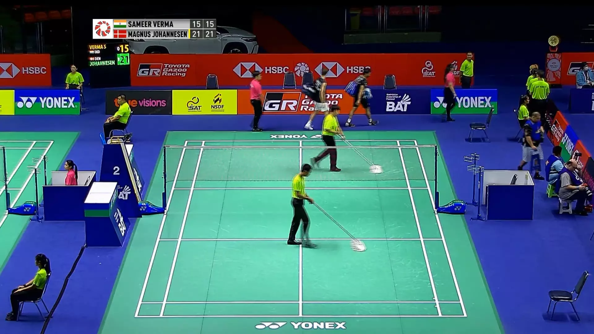 Saina Nehwal wins the first game 21-13.