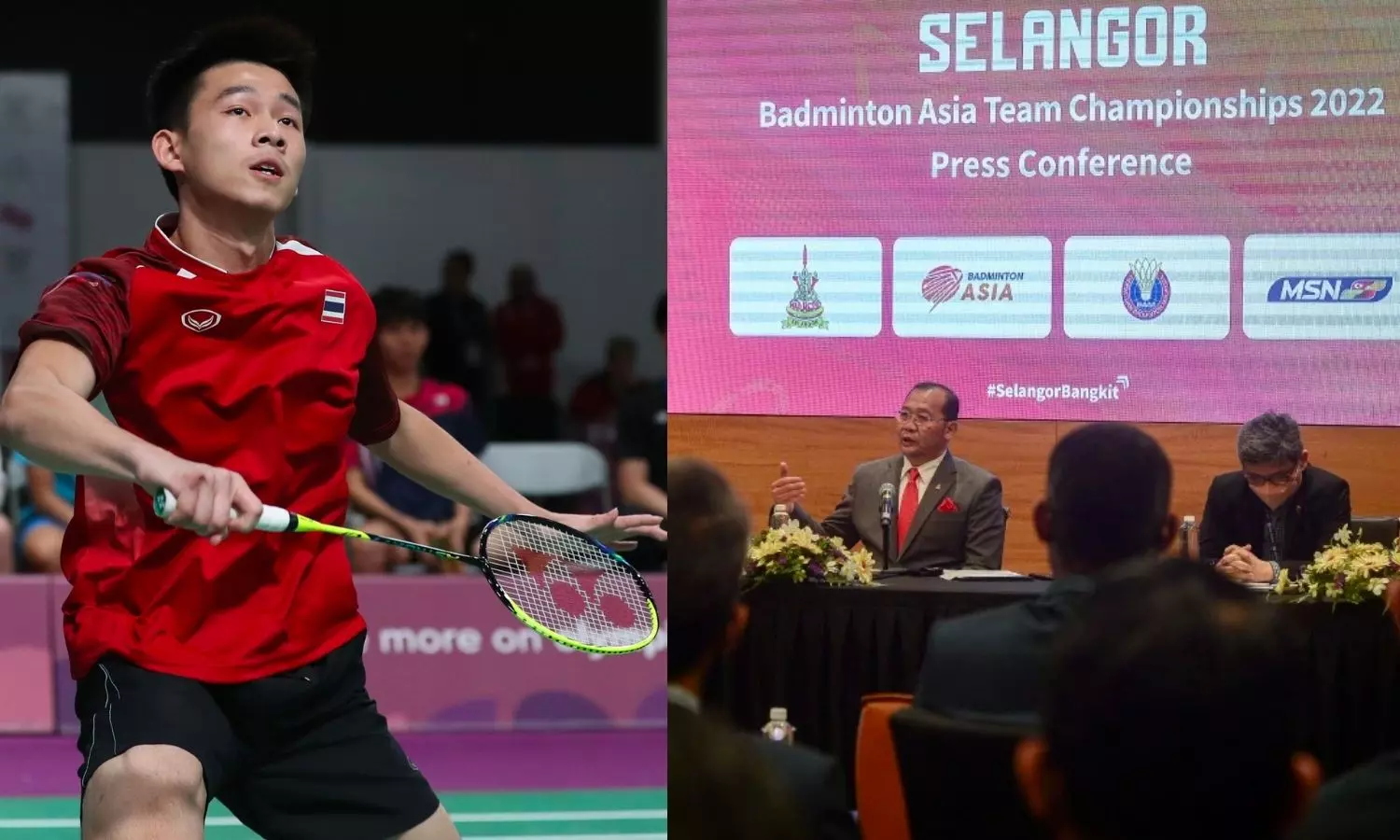 Thailand's Kunlavut Vitidsarn (left) and press conference during Selangor BATC 2022 (Sources: Wiki and Bernama)