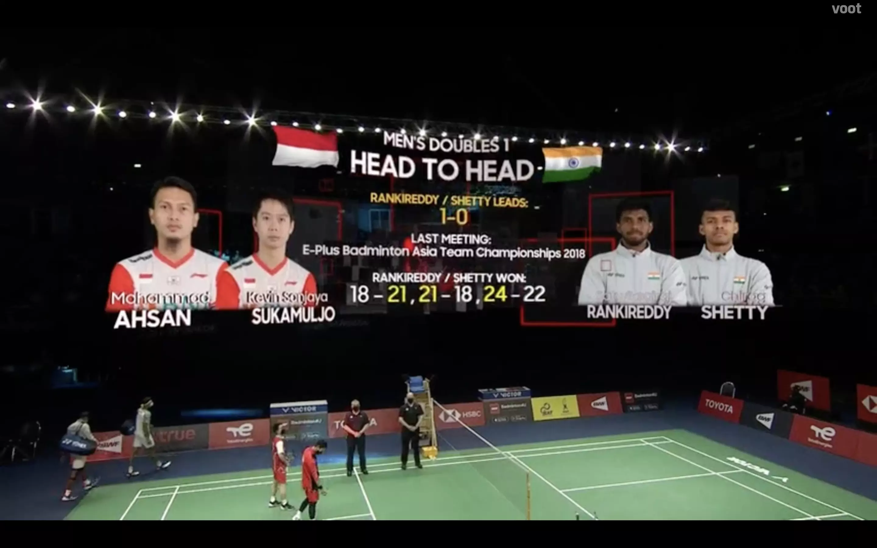 Ahsan and Sukamuljo with the lead as Satwik-Chirag keep losing point. At interval, the Indonesian pair lea 11-9