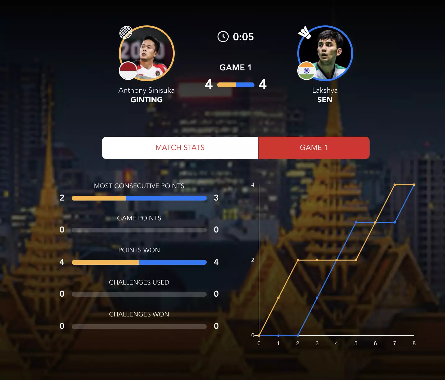 Sen leads 3-2 in this opening game as he takes a few quick points with great rallies.