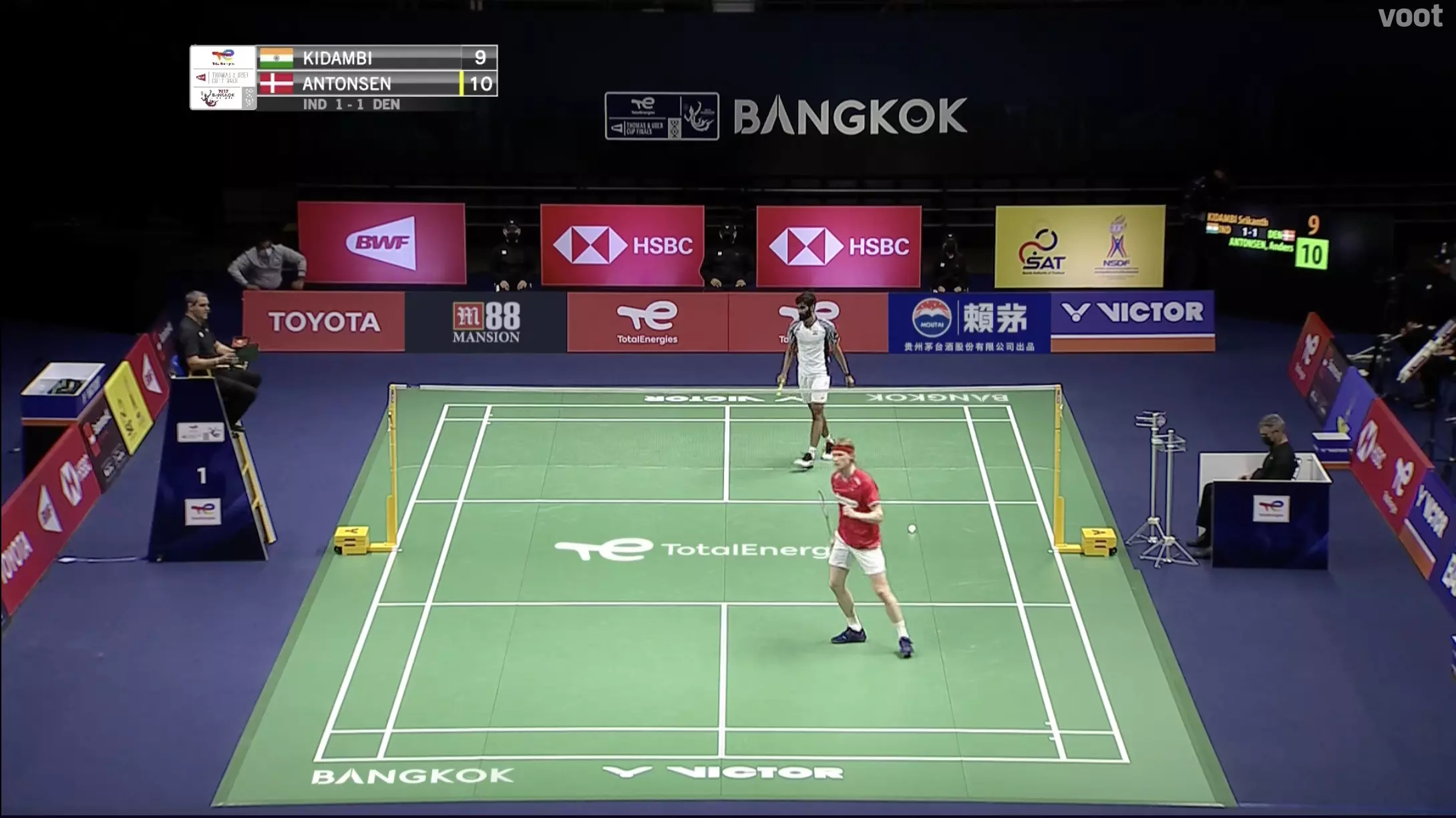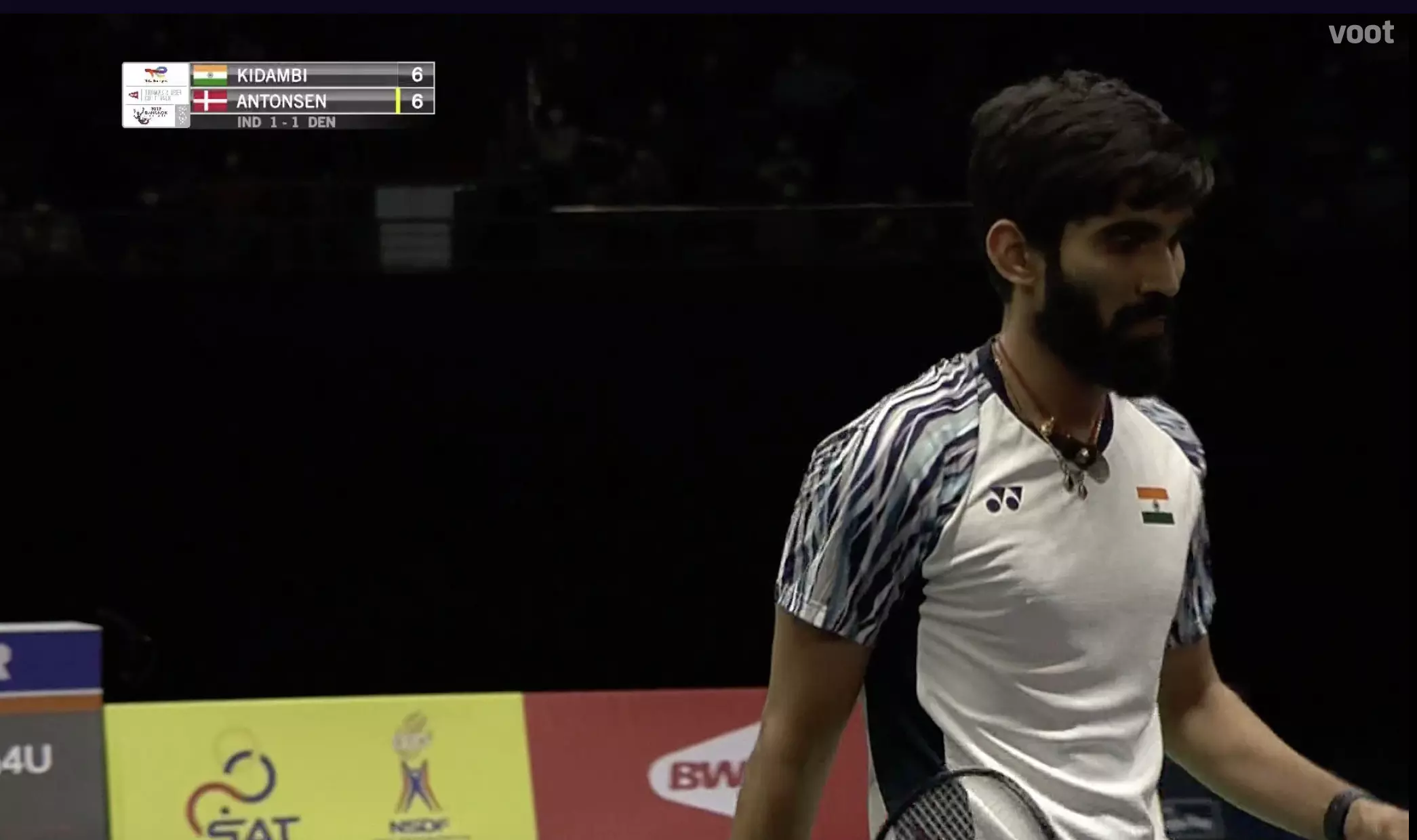 Antonsen recovers with 4 straight points to equalise at 6-6. He keeps Kidambi on toes with his brilliant crosscourt returns.