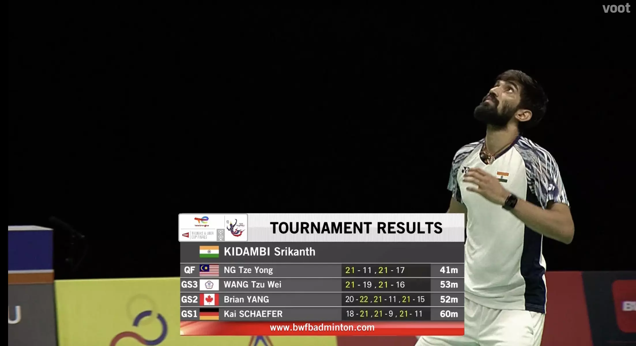 A reminder, Kidambi Srikanth hasn't lost a single match so far in the Thomas Cup.