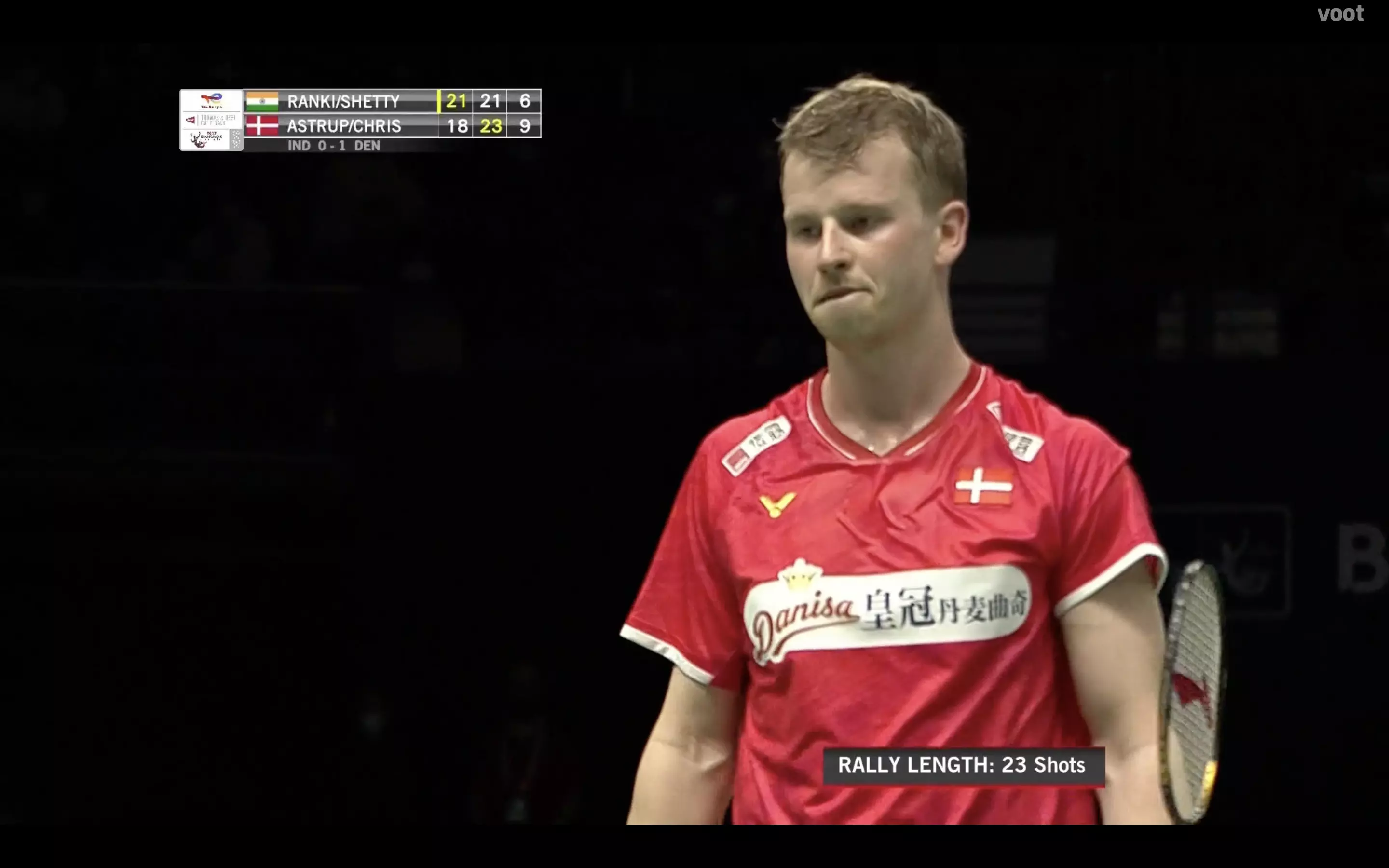 Shetty attacks from the front here as India leads 18-16 and the Danes scramble to return
