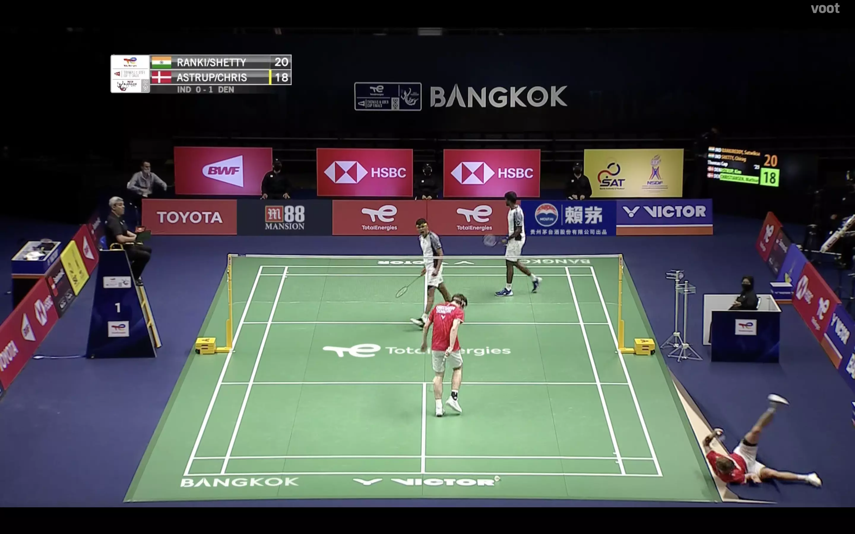 Kim Astrup tumbles on one side as Satwik-Chirag win the first game!!