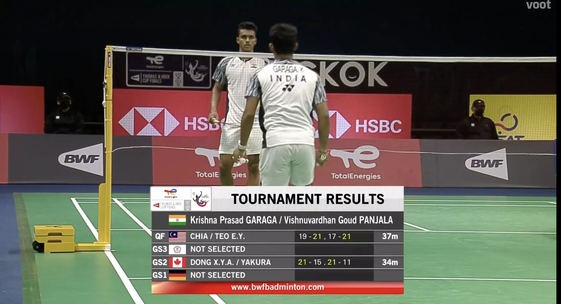 Lakshya Sen went down to Viktor Axelsen but Satwik-Chirag managed a nervous three-set win against Kim Astrup and Mathias Christiansen to level the tie at 1-1. Kidambi Srikanth also followed it up with a fantastic win against Anders Antonsen. However, the pair of Krishna and Vishnu lost and finally HS Prannoy stepped up once more to create history for India and took the team to their maiden Thomas Cup final!