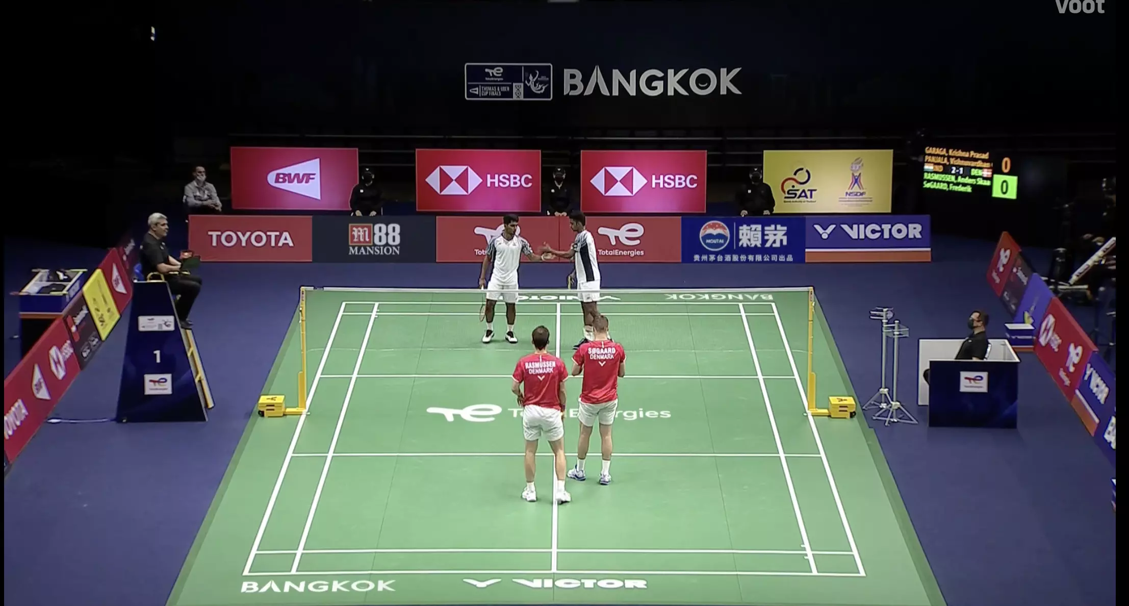 Krishna Prasad Garaga and Vishnu Panjala will take on Denmark's Anders Skaarup Rasmussen and Frederik Søgaard in the men's doubles action.