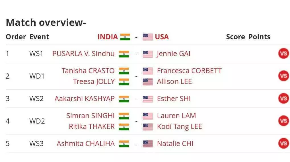 All eyes will be on the PV Sindhu-led Indian women's team at the Uber Cup today as they take on the USA in the group stage tie. Follow all updates LIVE.