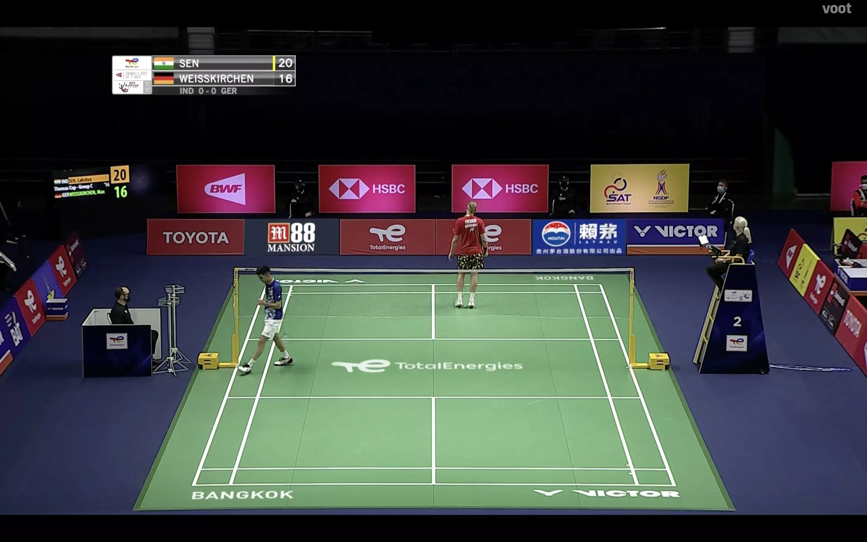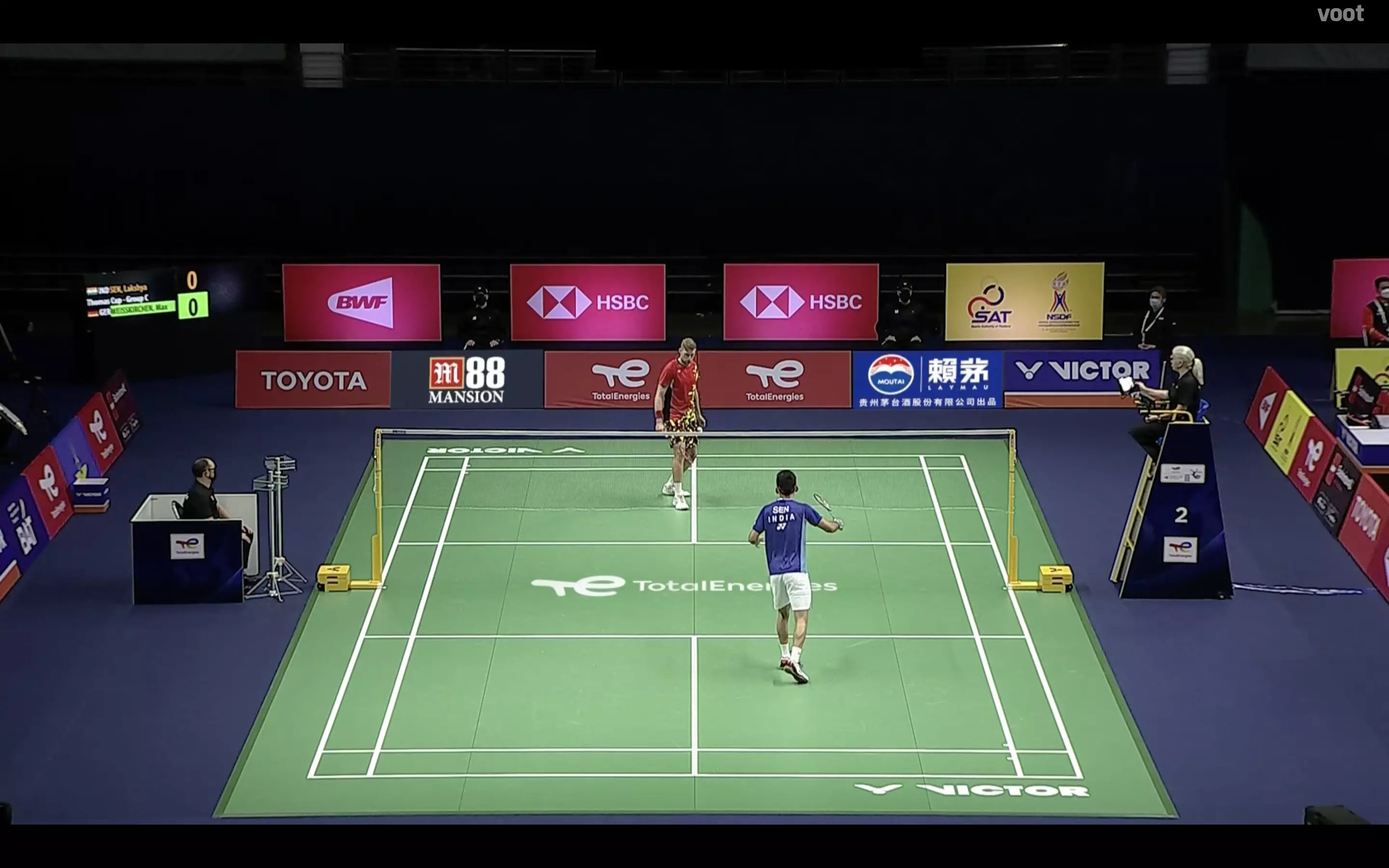 Players on court as Lakshya Sen gets ready for his debut match at the Thomas Cup!