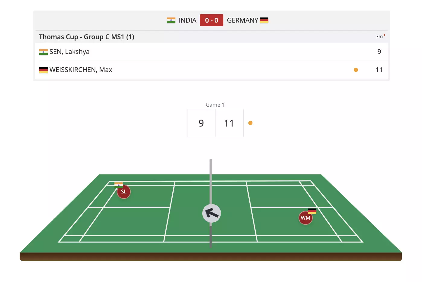 World No. 9 Lakshya Sen will be the first one to step out from the Indian side as he takes on World No. 64 German player Max Weisskirchen.