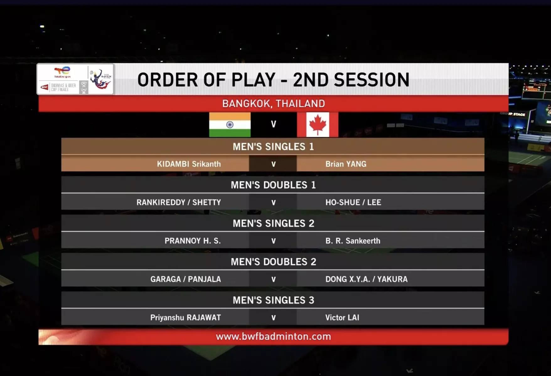 On day 2 of the Thomas Cup, the Indian men's team is going to square off against Canada in 5 exciting clashes, Get all the LIVE updates.