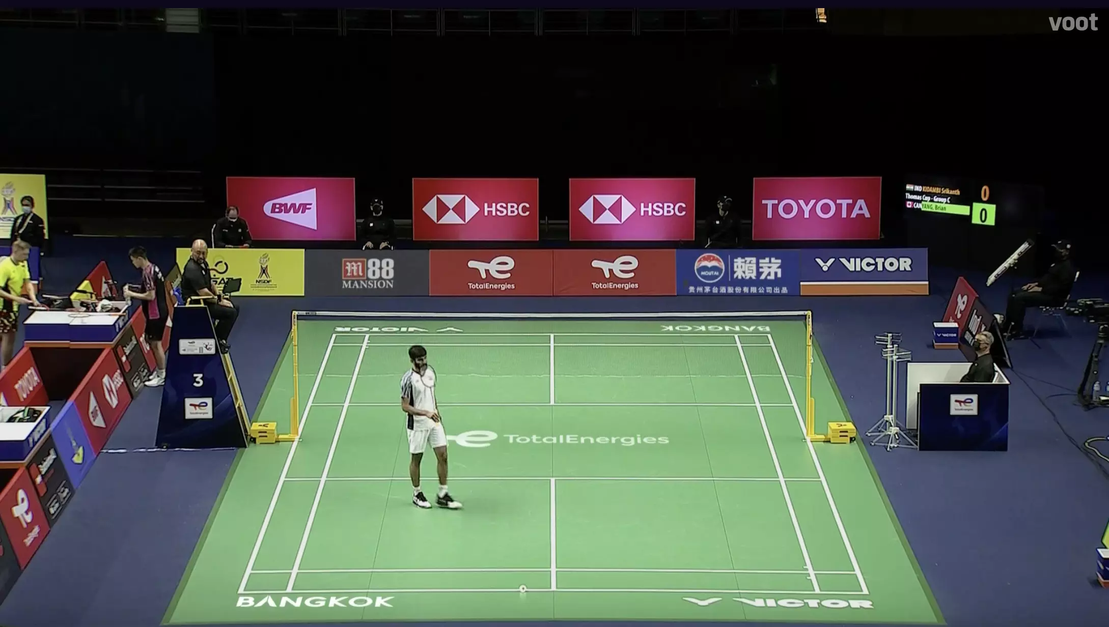 A long rally ensues and Kidambi wins the first point after taking a wise decision to leave the shuttle as it goes wide