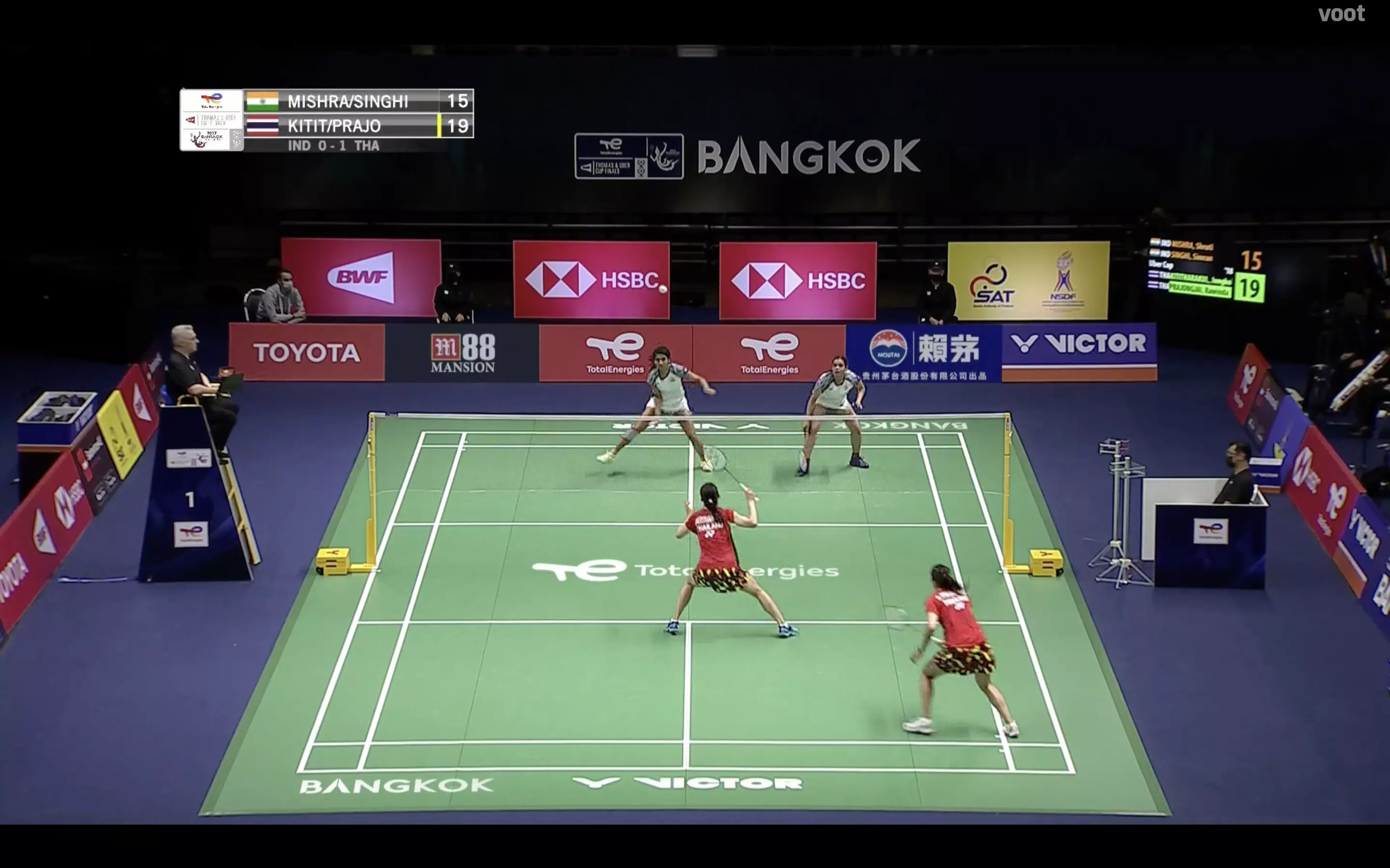 Shruti's return finds the net hard and it gifts game point opportunity to the Thai duo