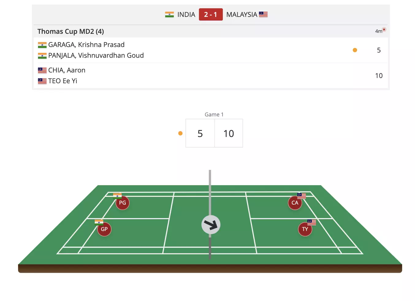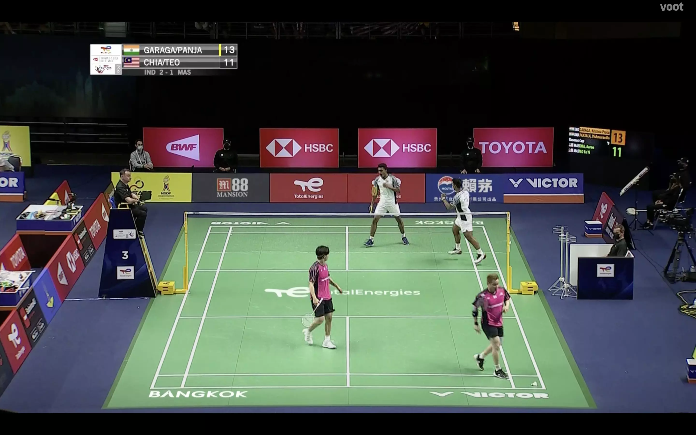 This is the match. The Indian management has decided to gamble in the second doubles match and this is it. A young pair of Krishna Prasad and Vishnuvardhan will go up against the scratch pair of Aaron Chia and Teo Ee Yi.