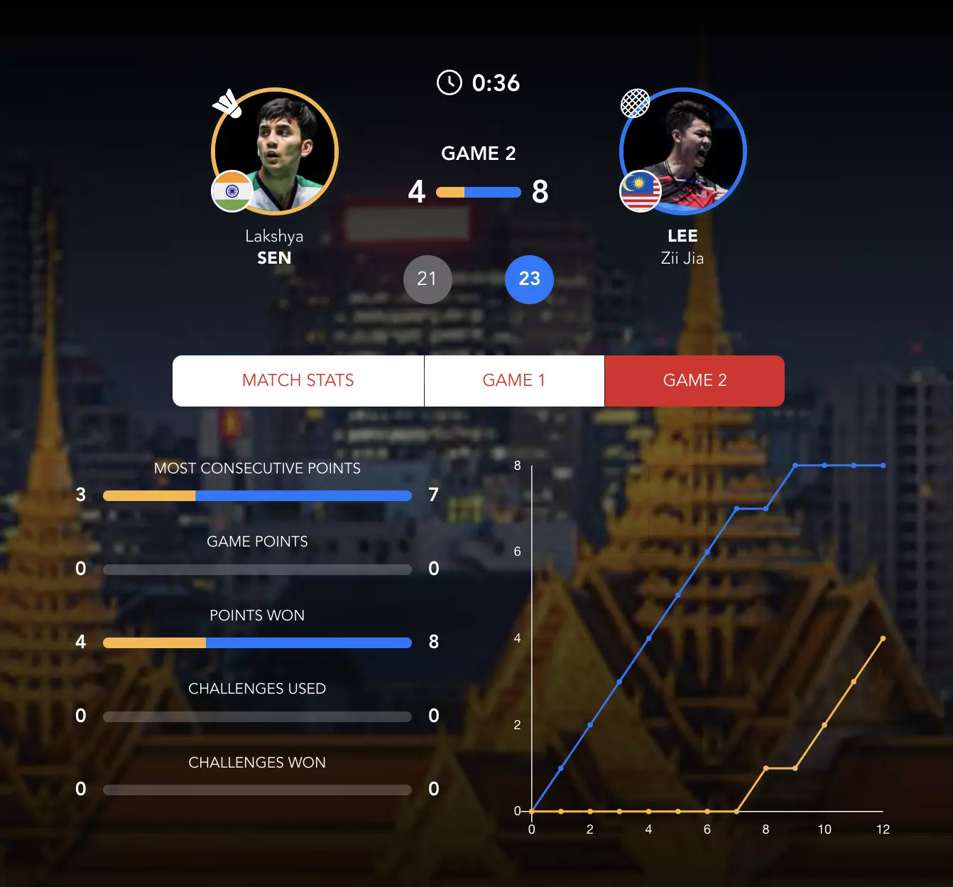 Lee Zii Jia comes into Game 2 with renewed energy and leads 0-7!