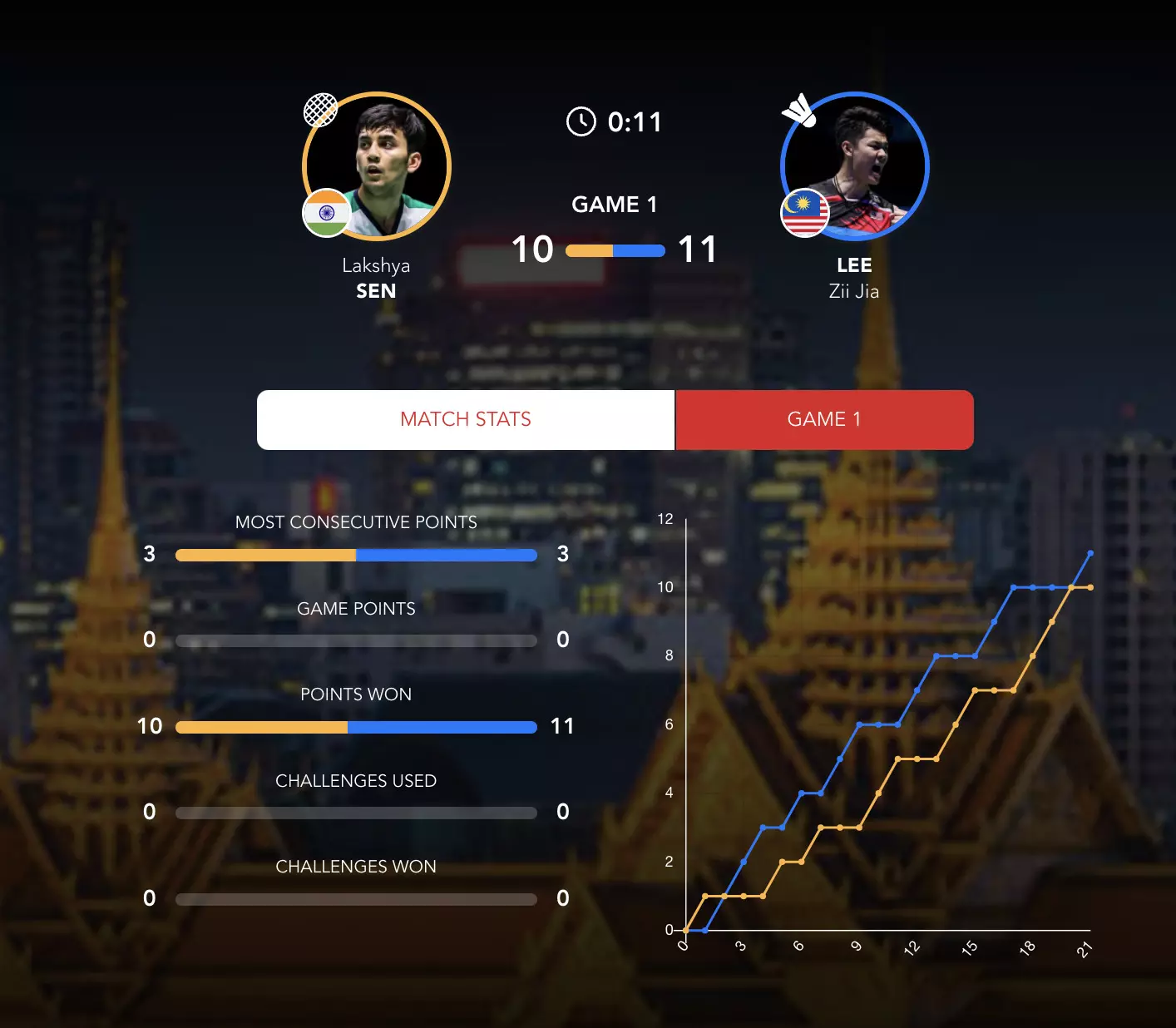 Zii Jia puts away a smash to take the lead in the mid-game break. Just one point separating the two again. Come on, Sen, you got this!