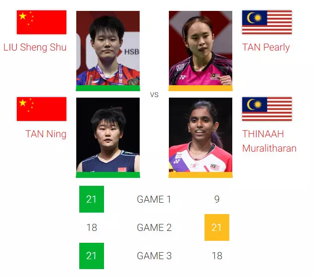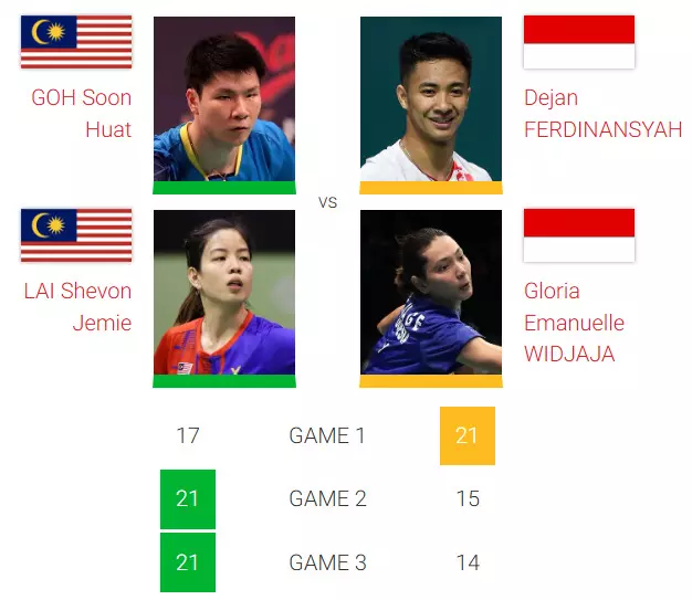 The Malaysian pair of Goh and Lai have beaten the Indonesian pair of Dejan and Gloria.