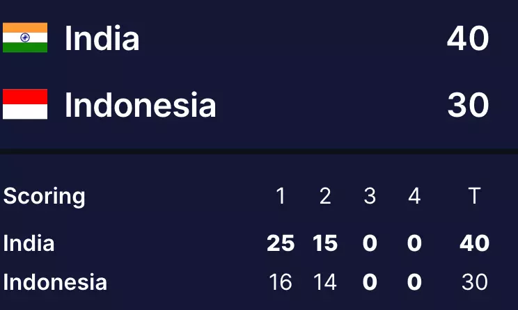 India's pace burns Indonesia, IND 23-16 INA after 9 minutes
