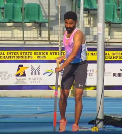 Bineesh Jacob starts the 4.50m mark with a clean vault on his first attempt.