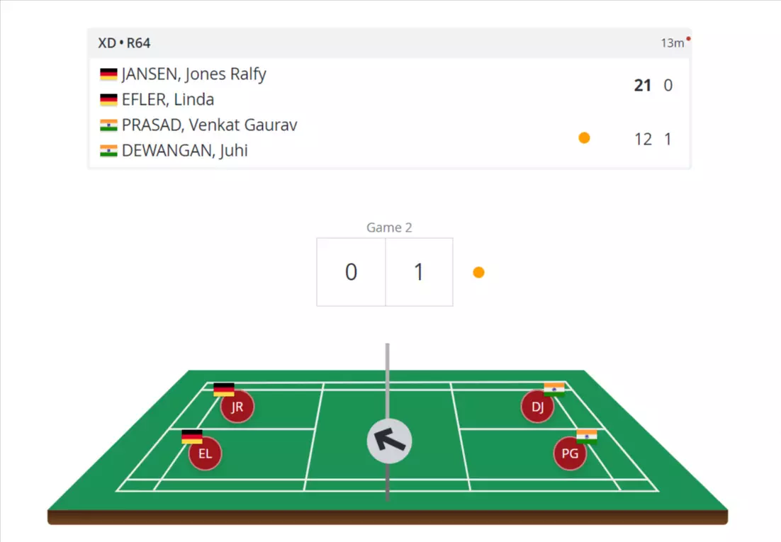 Juhi and Venkat go down in the first game against German pair Linda Efler and Jones Ralfy Jansen in the first game.