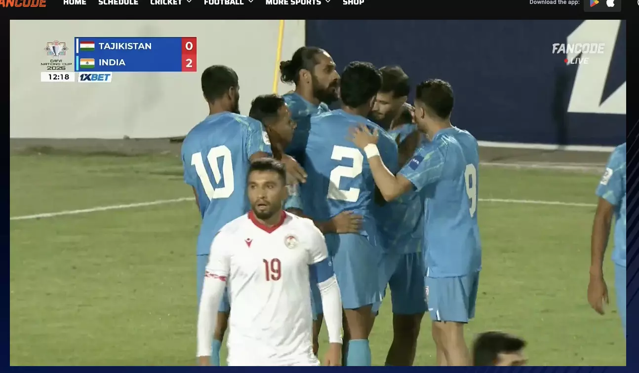 A fine cross from Anwar Ali finds Rahul Shankar Bheke inside the box. His header bounces awkwardly, and Sandesh Jhingan reacts quickest to smash it into the net!India 2–0 Tajikistan