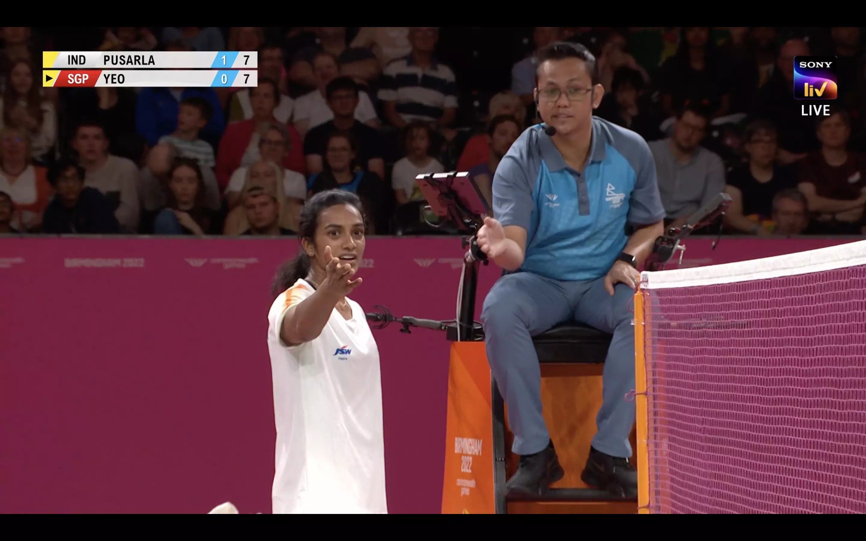 A couple of net cord errors and confusion from PV Sindhu but Yeo leads 8-7
