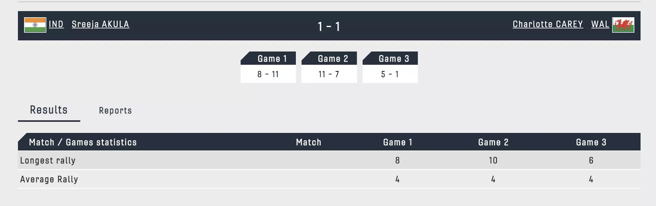 Sreeja Akula has to dig deep in her match here. For now, she leads 5-1 in the third game as her shots are falling perfectly on the table.