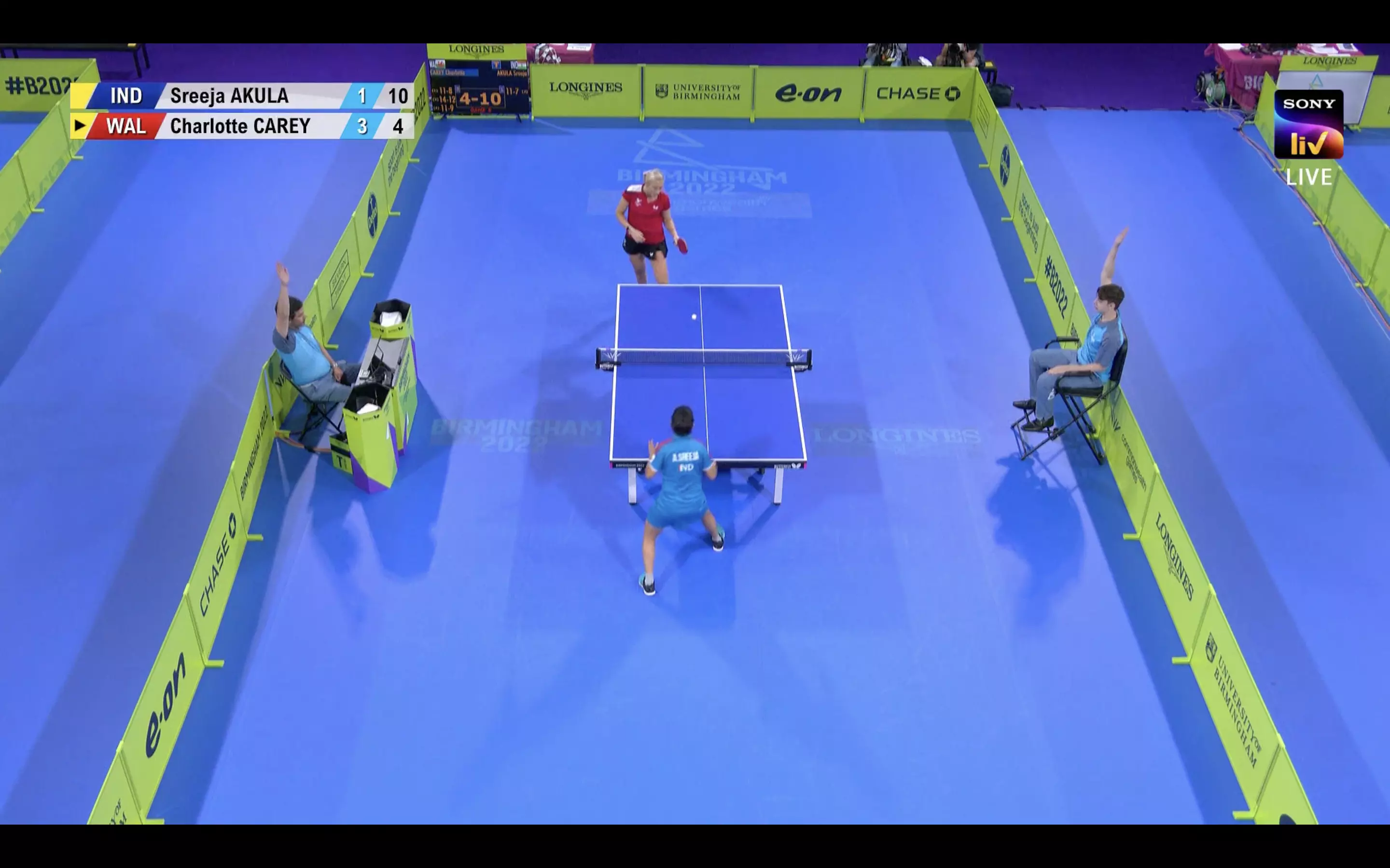 Sreeja Akula is being made to work hard here but she fights well, she wins the fifth game against Carey, 11-4! So far, Carey leads 3-2 in this match.We are into the sixth game!