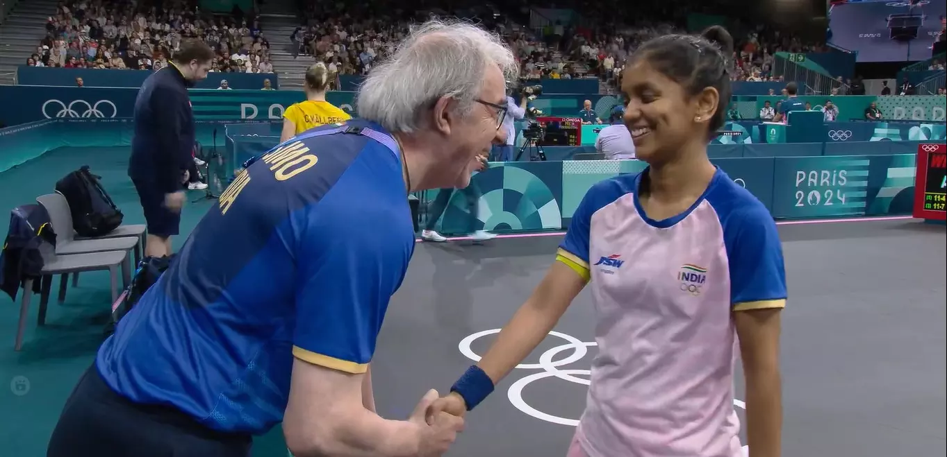 Sreeja won the match against the Swedish Christina in straight sets, beating her by 11-4,11-9,11-7,11-8.