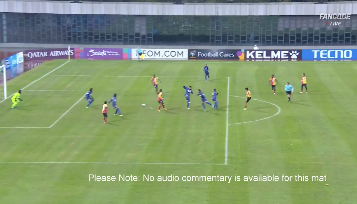 Shilky Devi Hemam pounces on a loose ball after the initial effort from Fazila Ikwaput is blocked by a Bam Khatoon defender. The rebound falls perfectly for Shilky, who smashes it home from long range to give EB a dream start. Huge celebrations from the Red & Gold as they take early control.