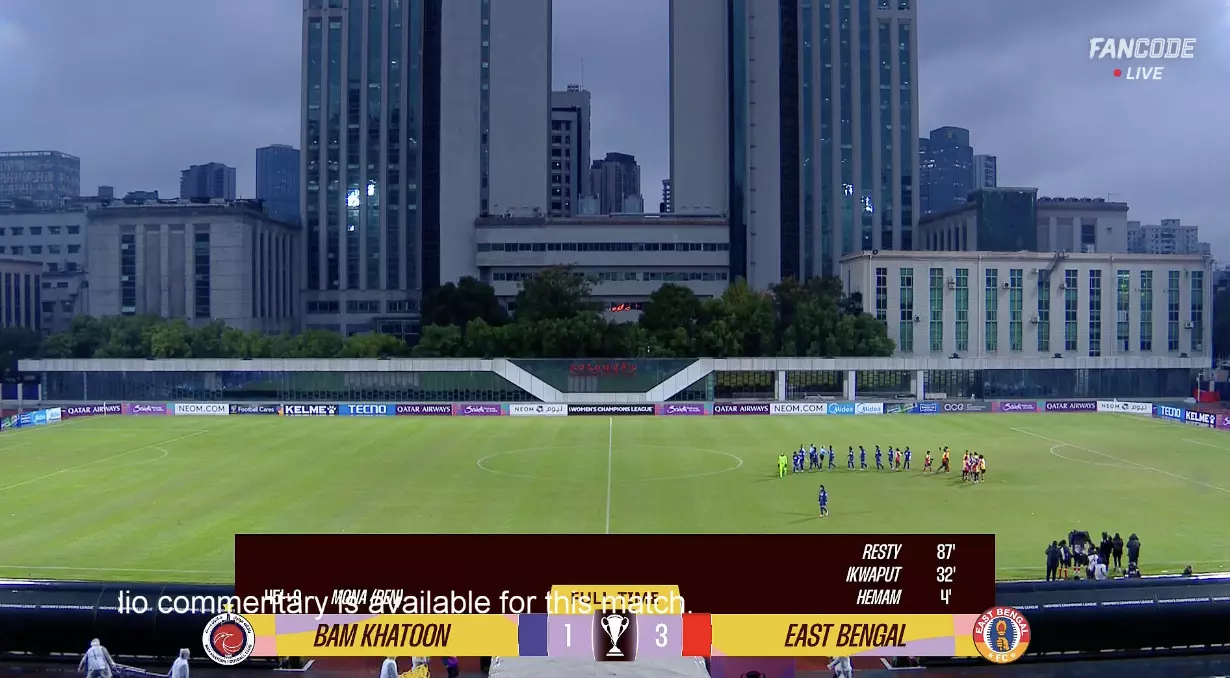 The referee blows the final whistle and East Bengal wrap up a statement victory in their AFC Women’s Champions League group stage debut. Goals from Shilky Devi Hemam, Fazila Ikwaput, and a late stunner by Resty Nanziri secure a well-deserved 3–1 win. A composed, confident performance from the Red & Gold Brigade, who start their continental journey in perfect fashion.