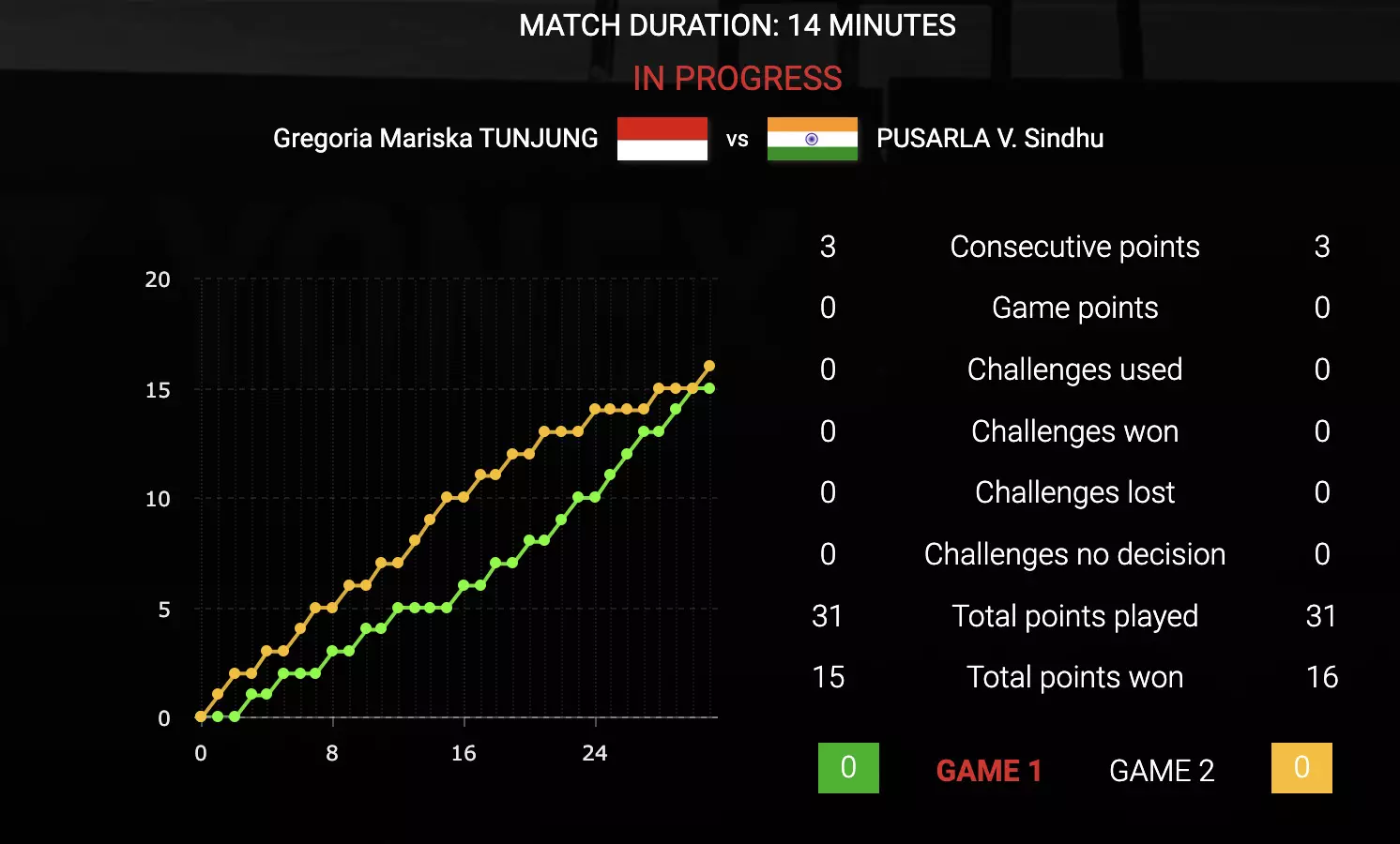 The tense points have arrived, Sindhu leads 16-15!