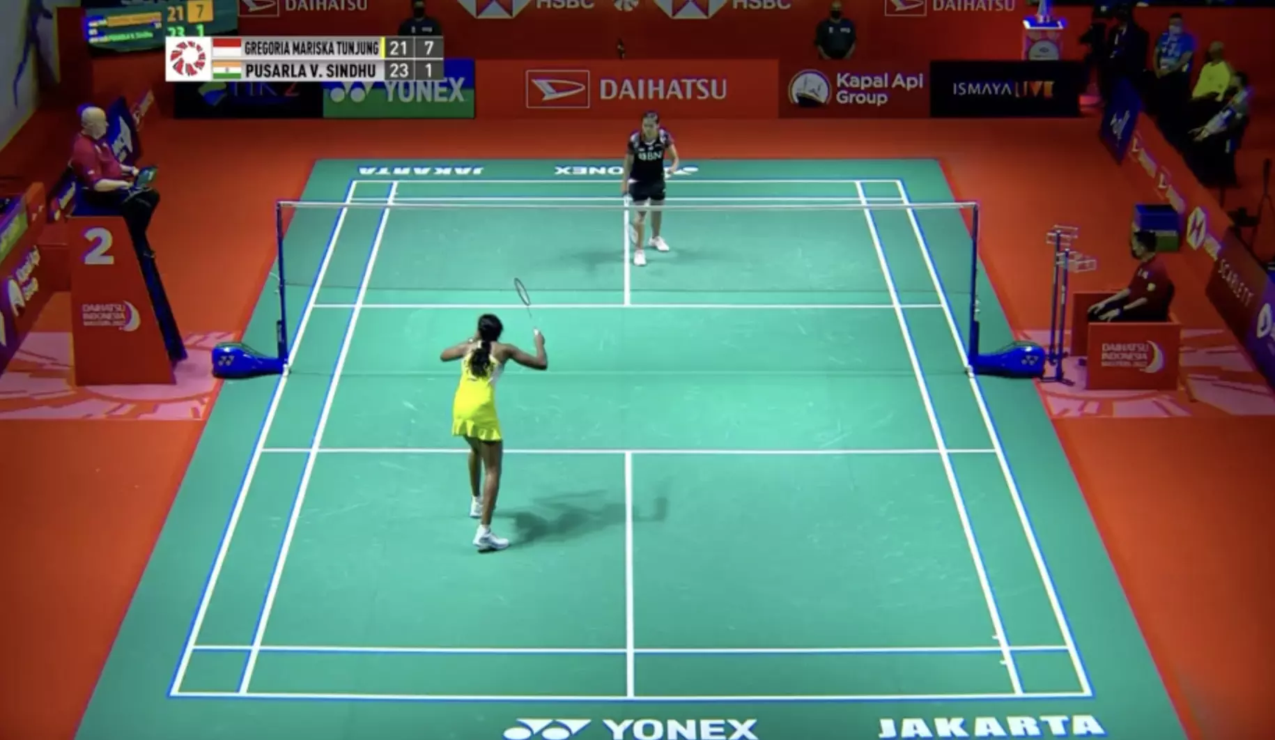 The momentum has shifted ever so slightly to the Indonesia who is playing with a different strategy in game 2 and she has a lead at 8-4 !