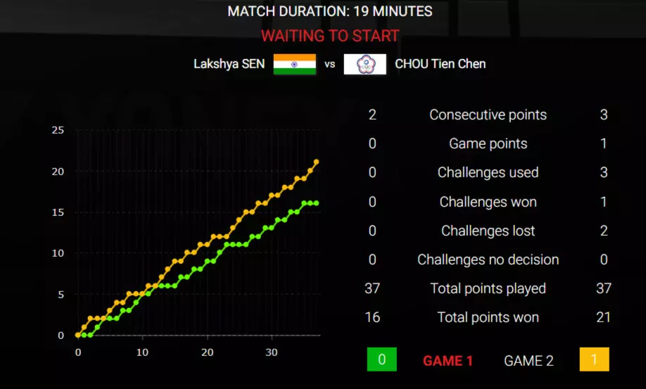 Stats from Game 1. ... Indonesia Masters 2022 Quarterfinals LIVE: Lakshya, Sindhu in action — Scores, Results, HIGHLIGHTS