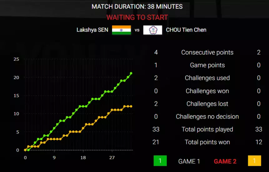 Lakshya Sen wins 2nd game with rather ease 21-12 taking the match into the decider.