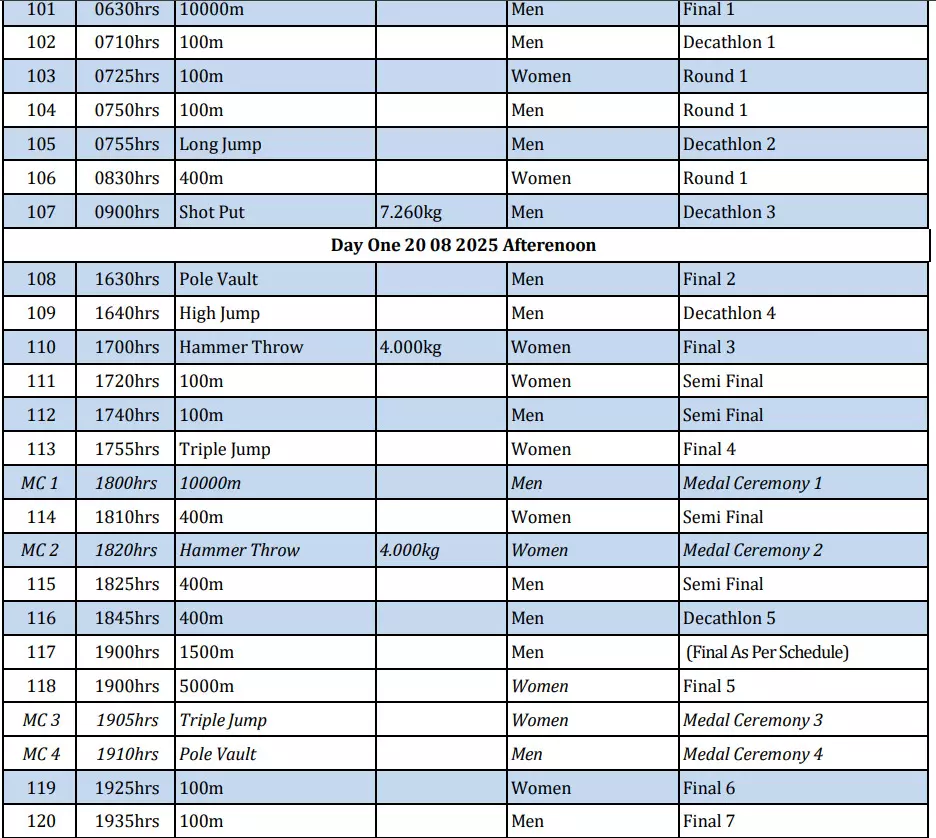 There will be 7 finals on the opening day of the competition