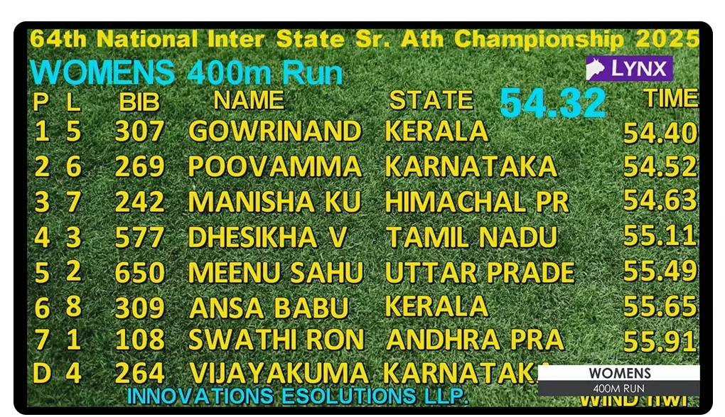 Once it started, Kerala's Gowrinandana raced to victory, clocking 54.40s ahead of the experienced Poovamma (54.52s).