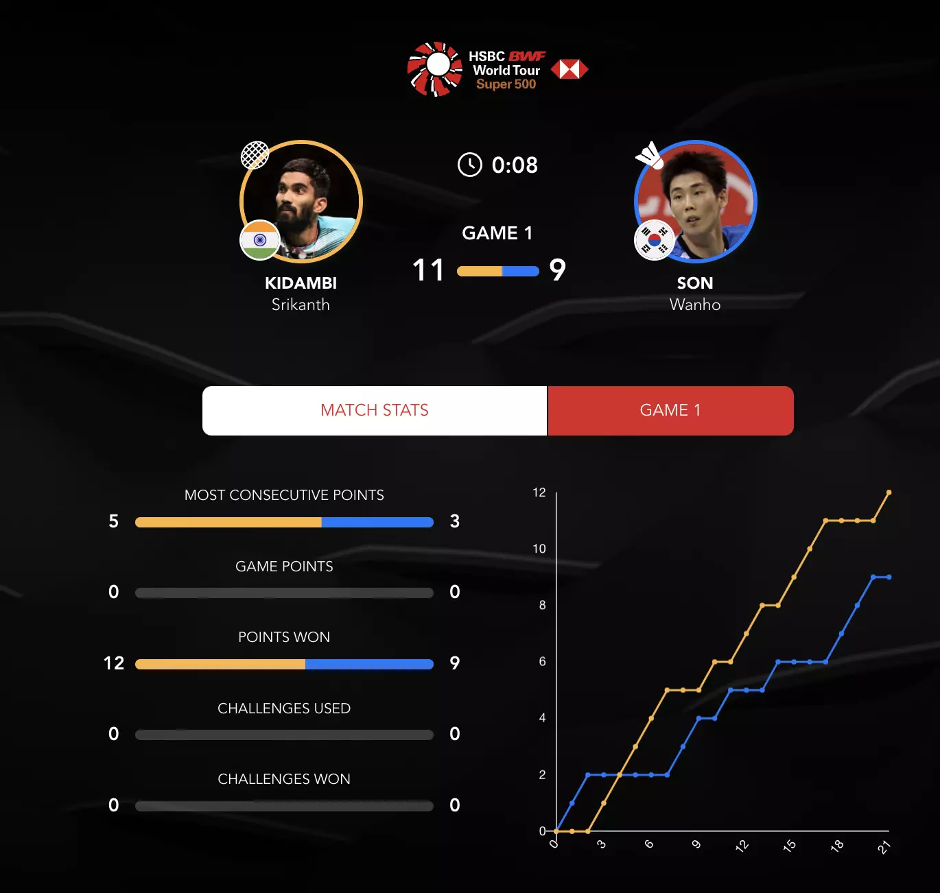 Kidambi Srikanth makes a heady start to this quarterfinal and he leads at 11-8! Let's go!