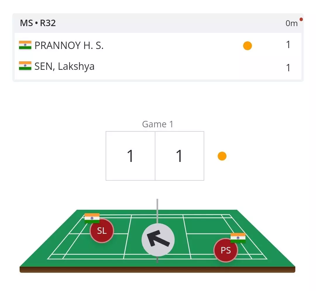 Early exchanges and both shuttlers take a point each.