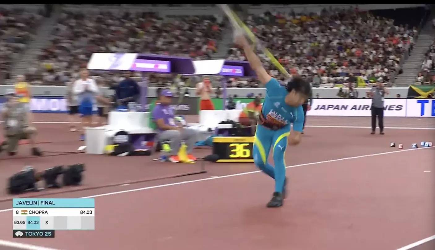 Neeraj with 82.86m. While not enough to challenge the top spots yet, he remains firmly in the top 8 heading into Round 5.