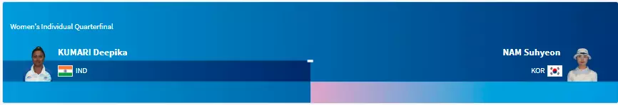 Four-time Olympian Deepika Kumari will face the second-seeded 19-year-old Nam Sunhyeon of South Korea in the quarter-finals later today.