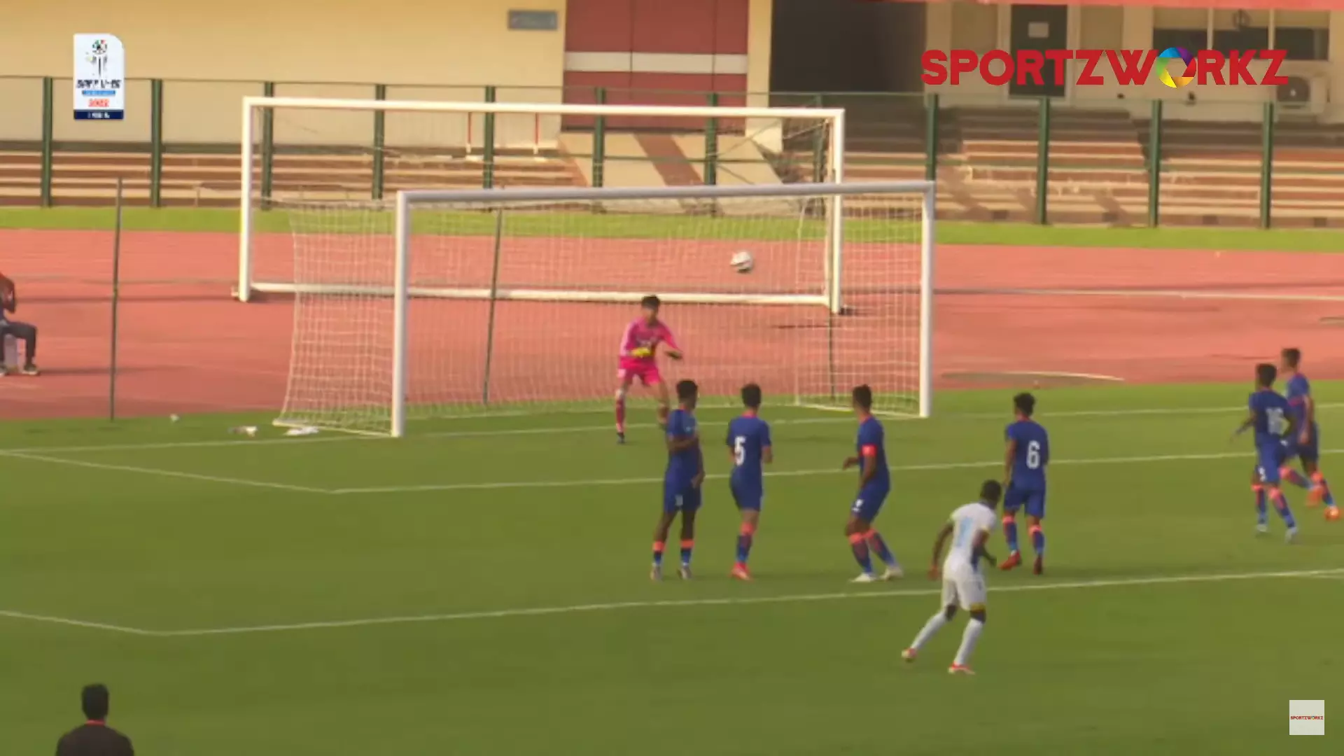 37'- Free kick collected by Indian goalie