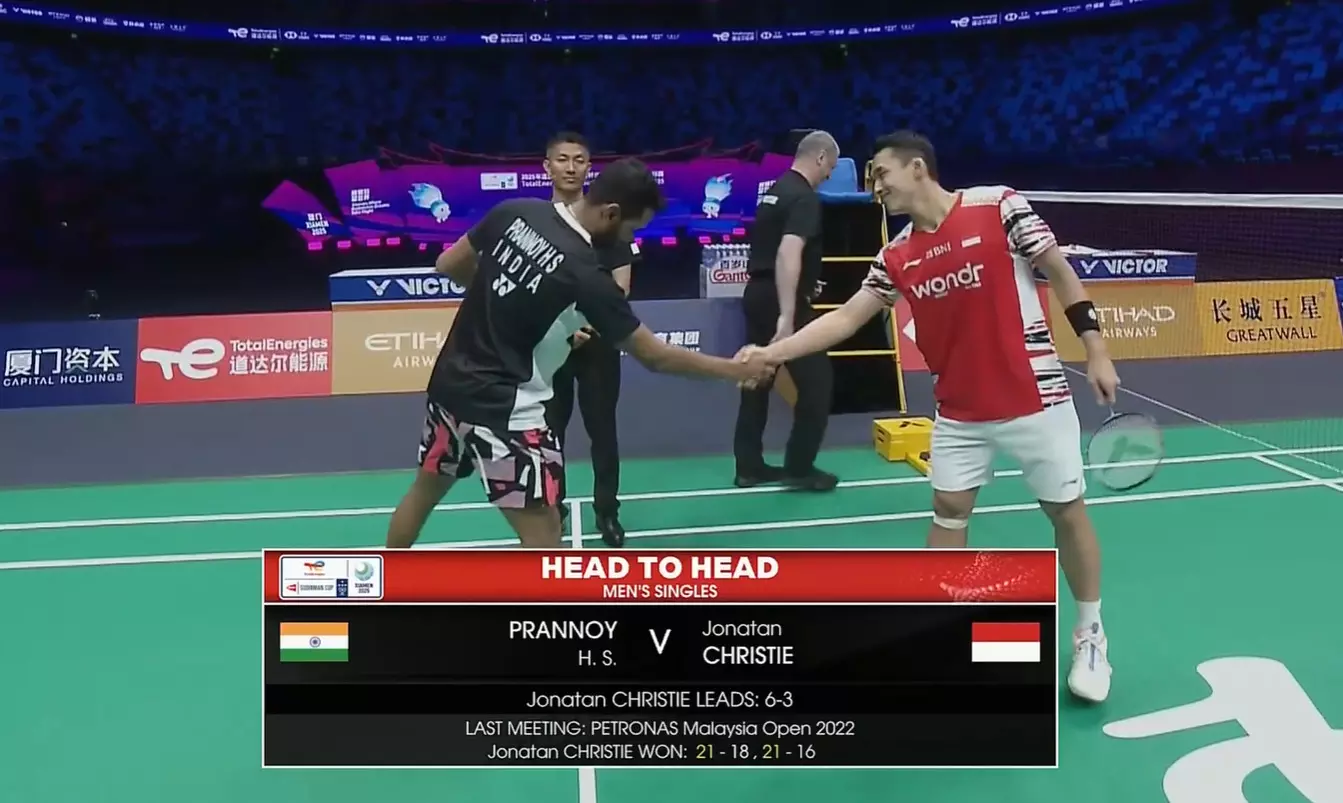 Jonatan Christie leads 6-3 in head to head encounters. The two last met nearly three years go in 2022. Can Prannoy eke out a win against Christie, who is playing his first match of the tournament?