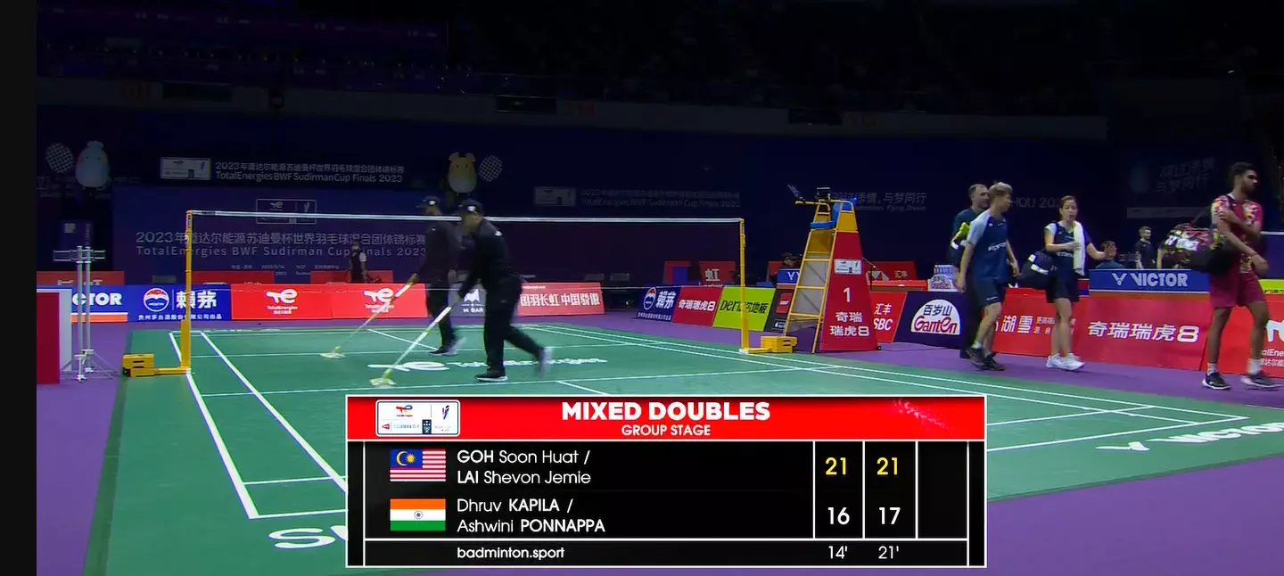 Published: 2023-05-15 09:46:35Not long, as Ashwini Ponnappa and Dhruv Kapila go down 16-21, 17-21 in just 35 minutes.
