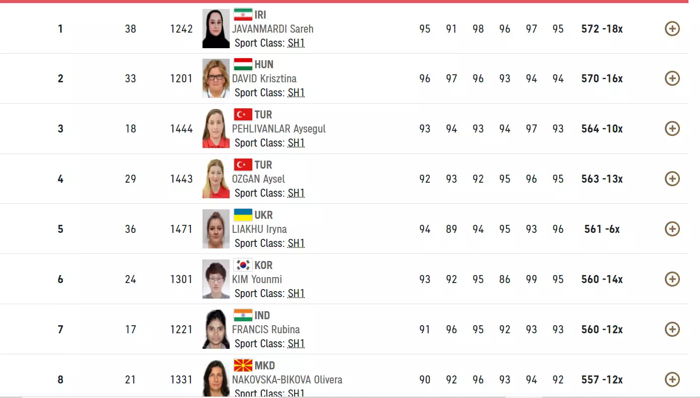 Women's 10m Pistol Shooter, Rubina Francis has qualified for the final finishing seventh in the qualification round.