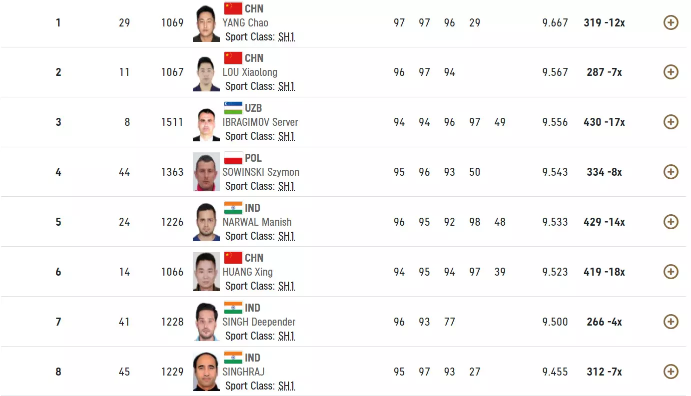 All the three Indians - Manish Narwal, Singhraj and Deepender Singh, are still going strong in the top 8 of Men's 10m Air Pistol Qualification.